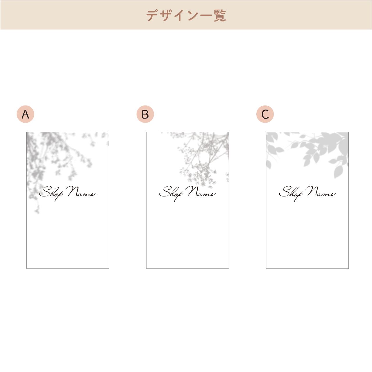 ショップ名など、一番大きな文字の部分のみフォントがお選びいただけます。