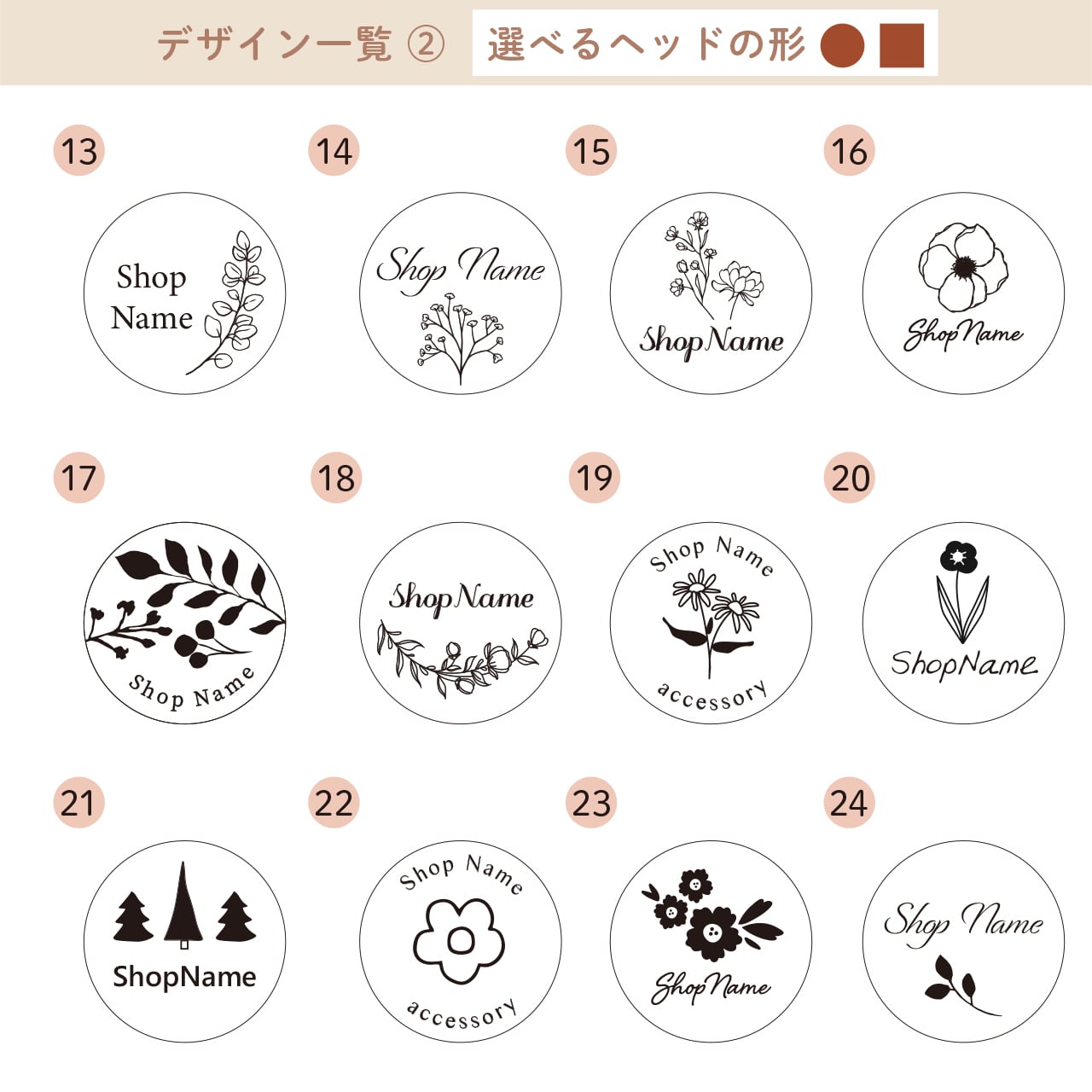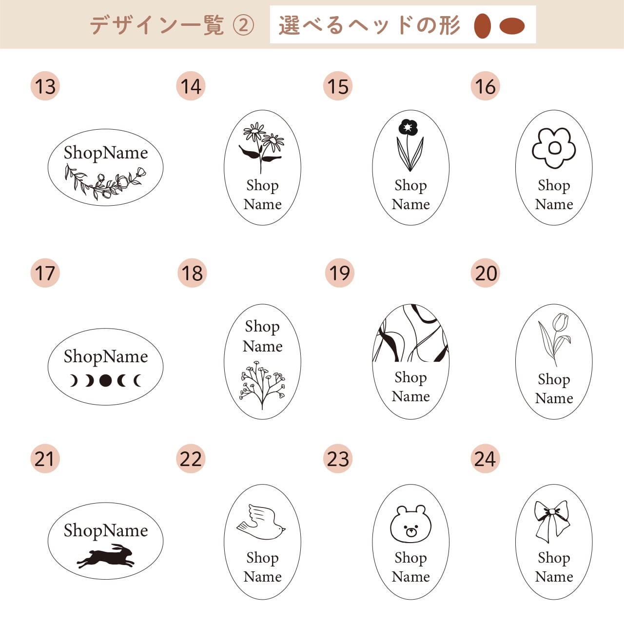 ショップ名など、メインの文字の部分のみフォントがお選びいただけます。