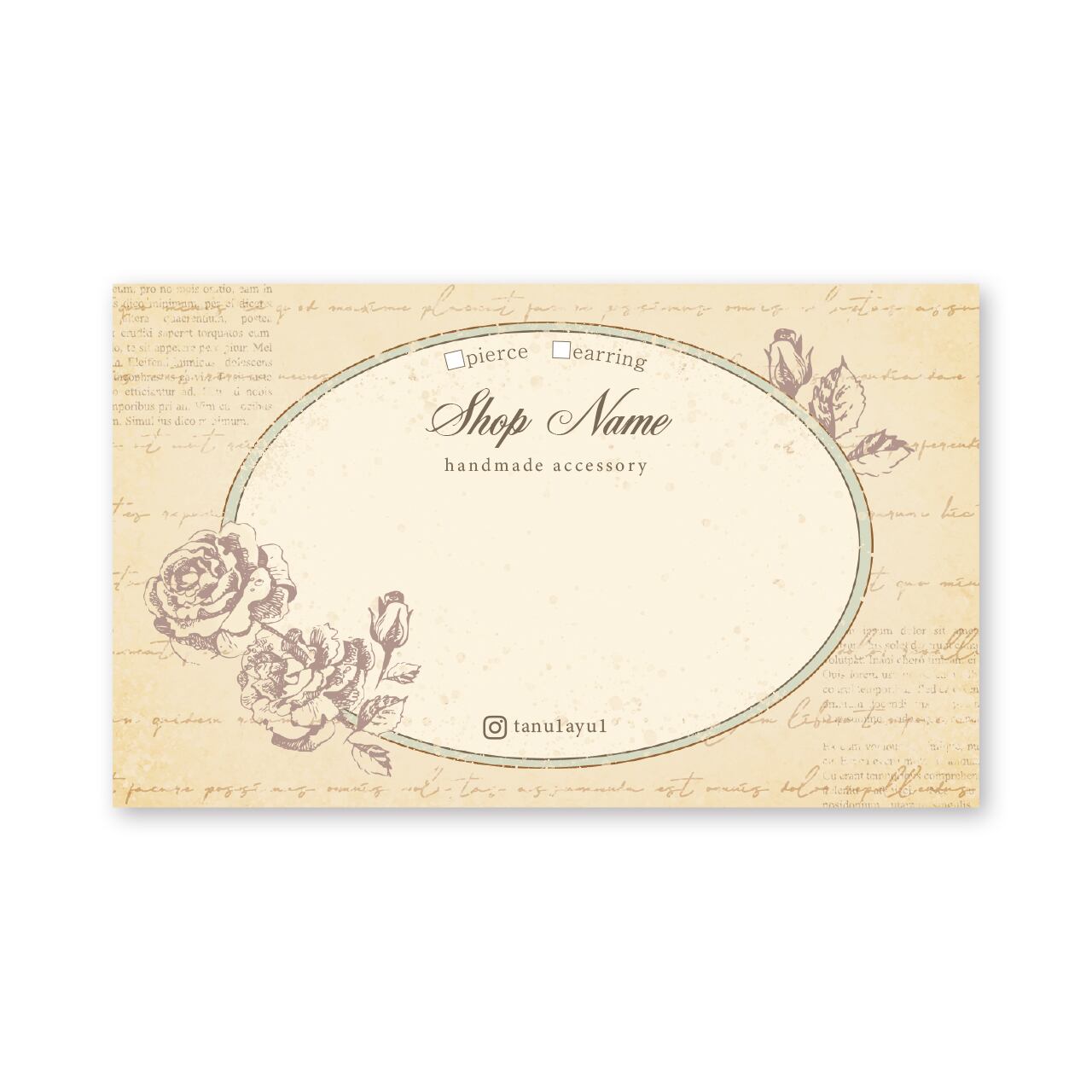 お好きな文字を入れて作る、セミオーダーのアクセサリー台紙です。