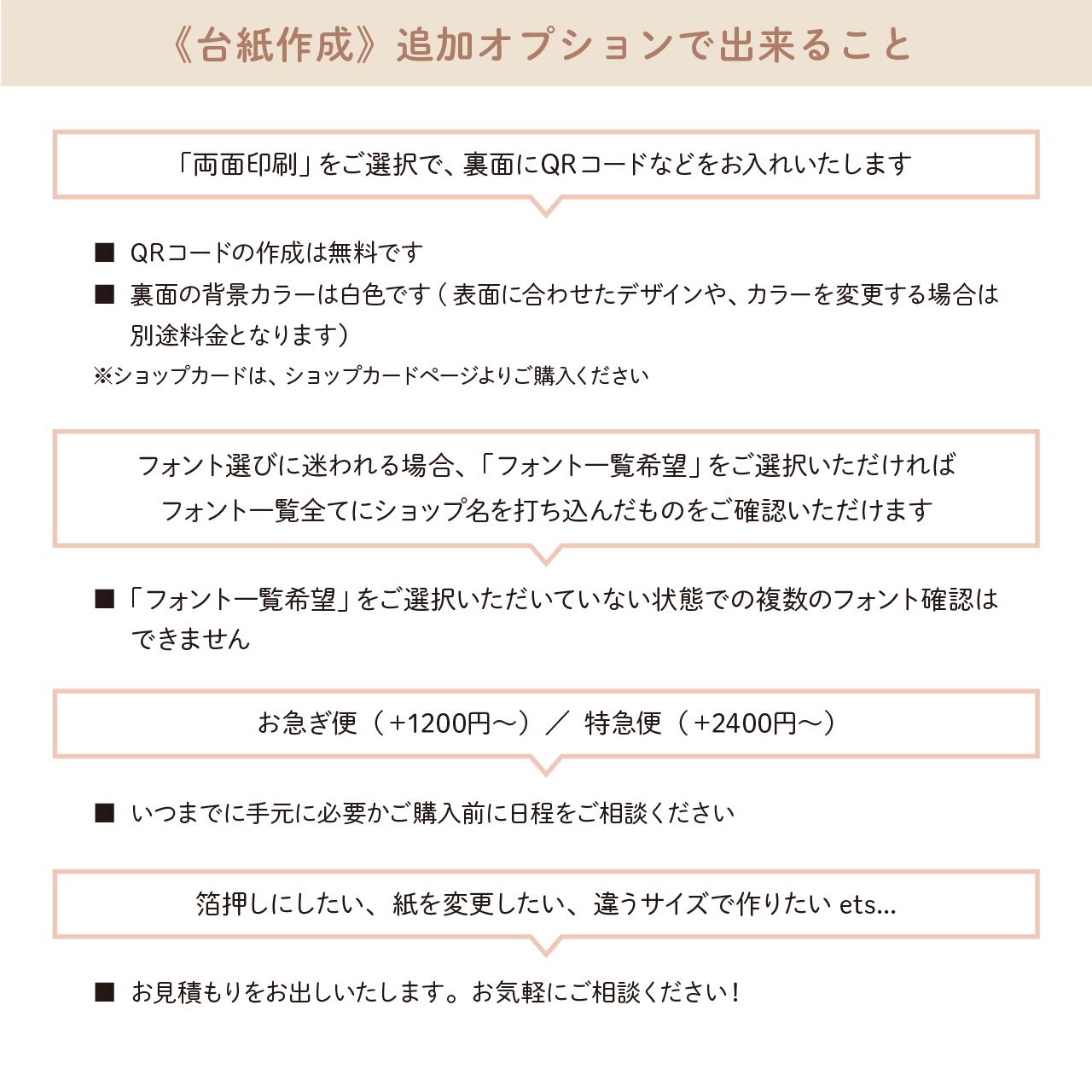 ショップ名など、一番大きな文字の部分のみフォントがお選びいただけます。