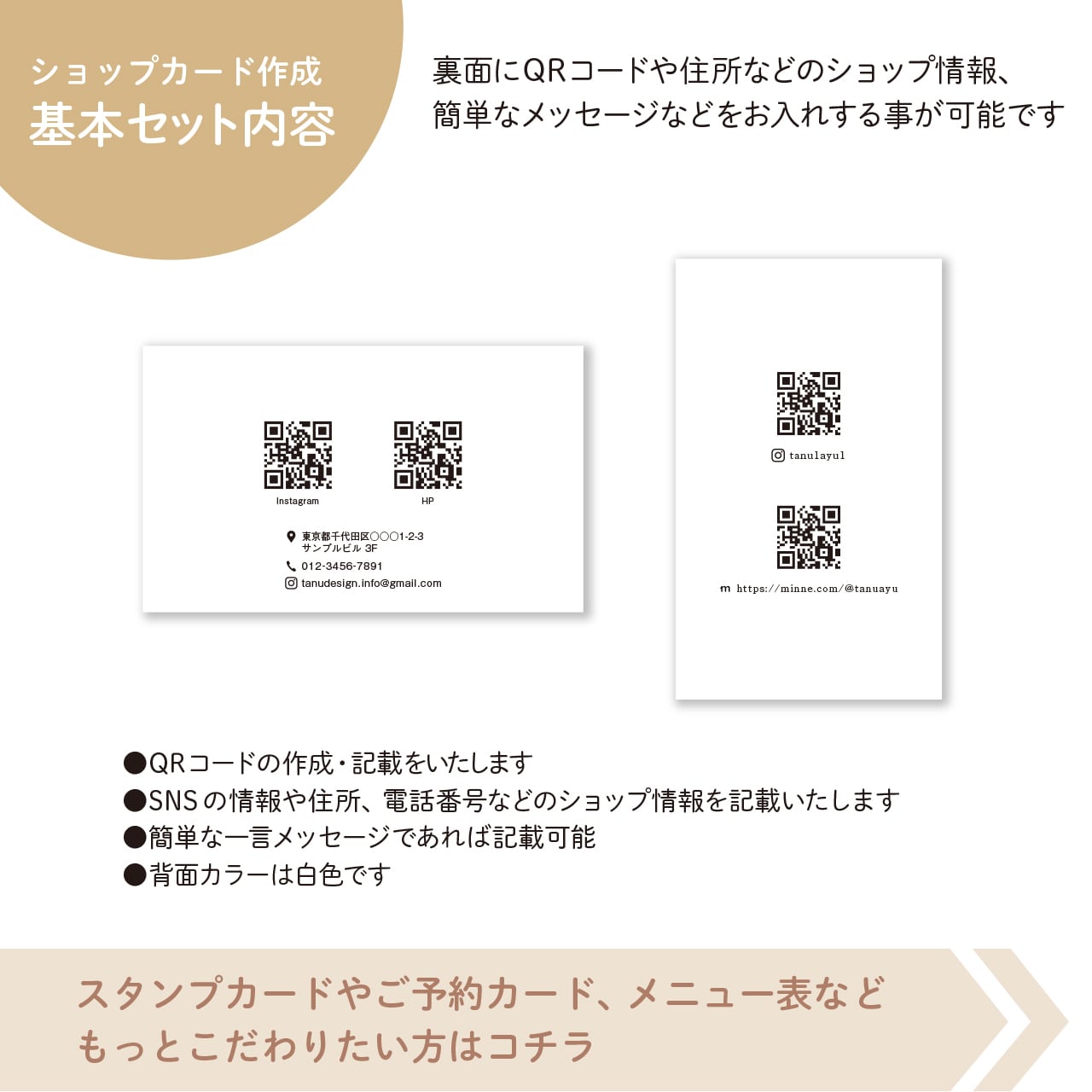 セミオーダーの名刺やショップカードを作成いたします。