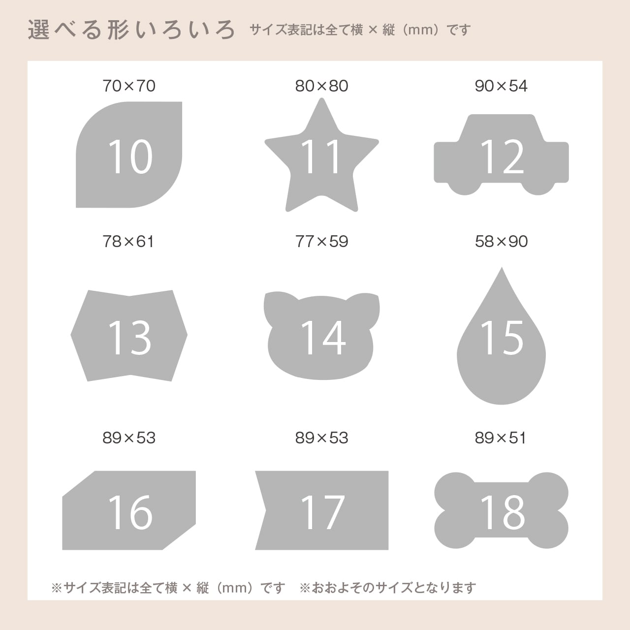 商品名に【No.○○】とデザインナンバーが記載されているので、使用したいご希望のデザインナンバーをオプション欄にご記載ください。