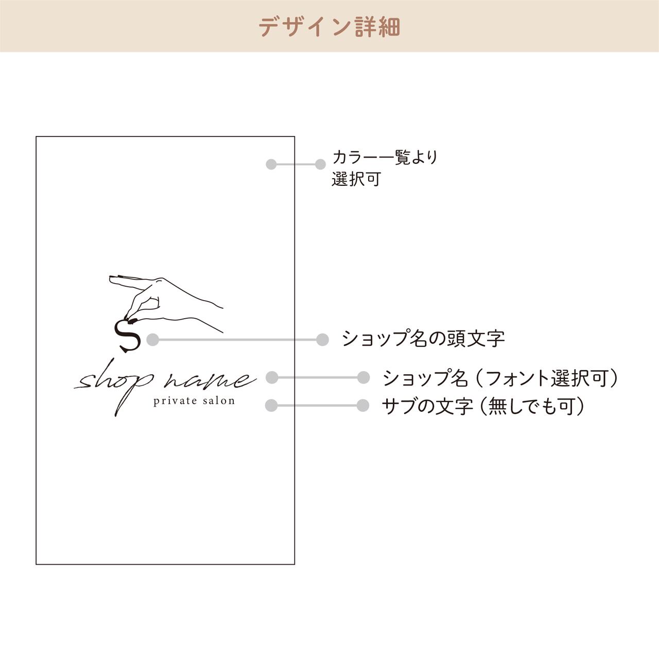 ショップ名など、一番大きな文字の部分のみフォントがお選びいただけます。