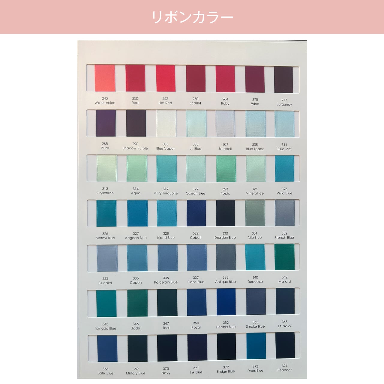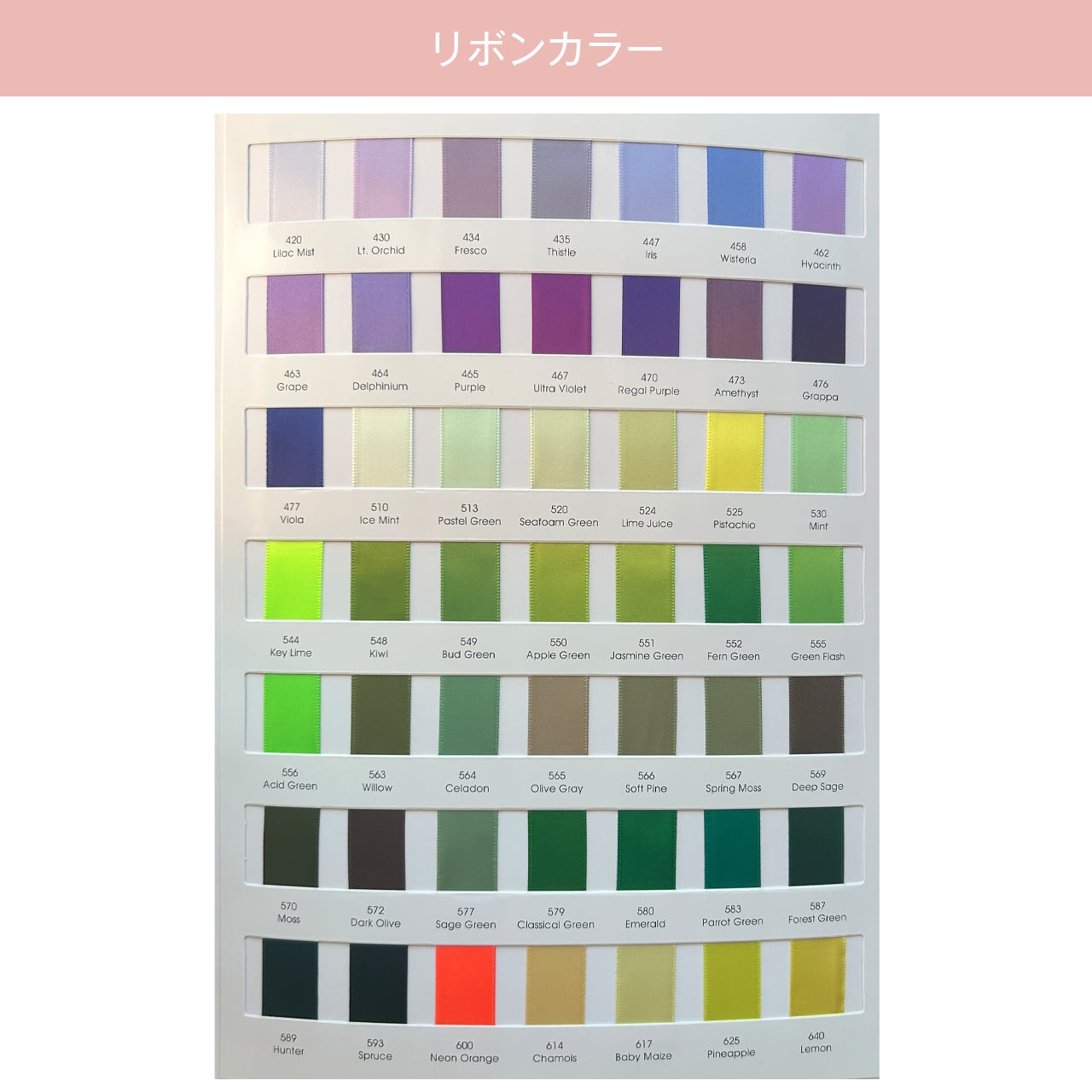 選べるリボンカラー196色。たっぷり使える90m。