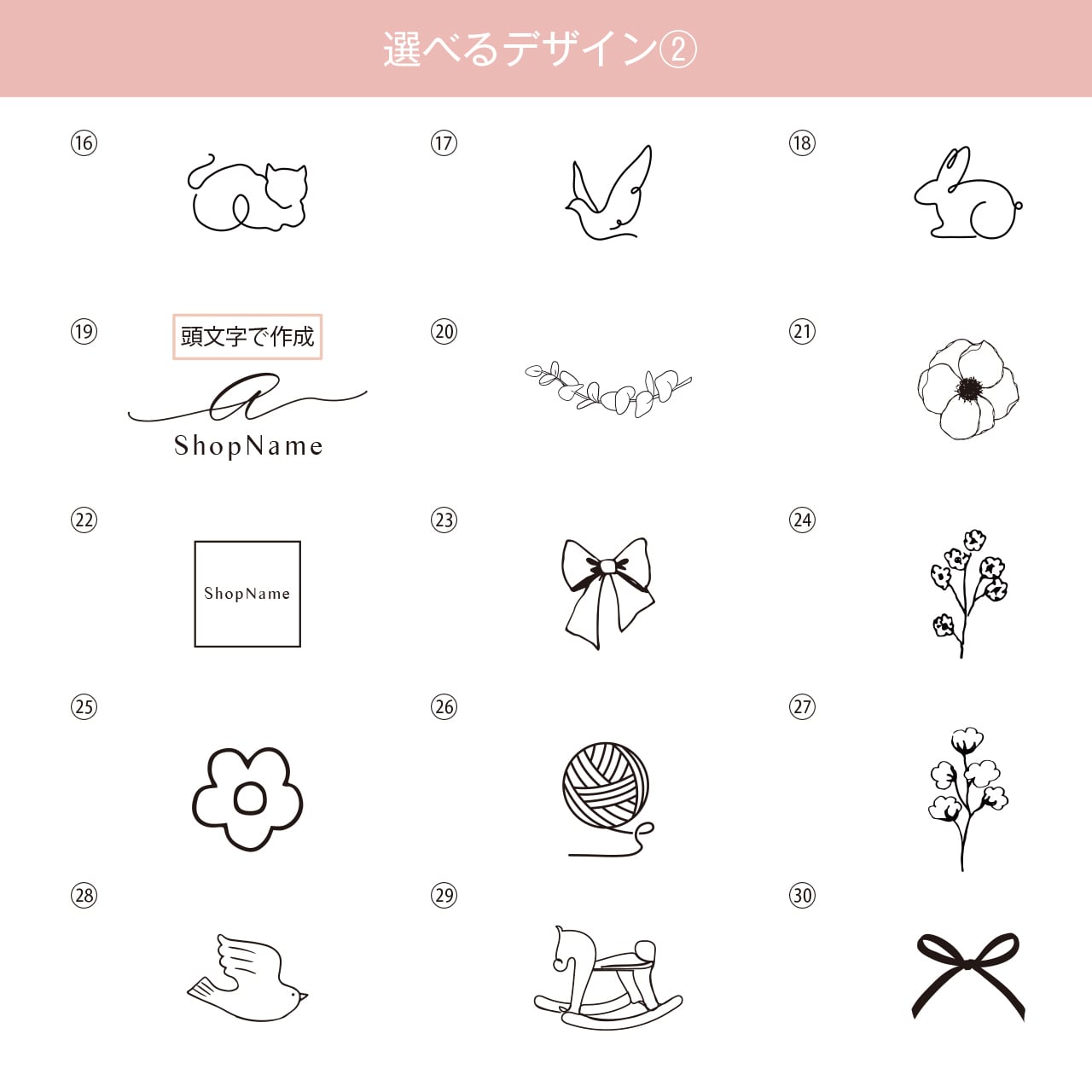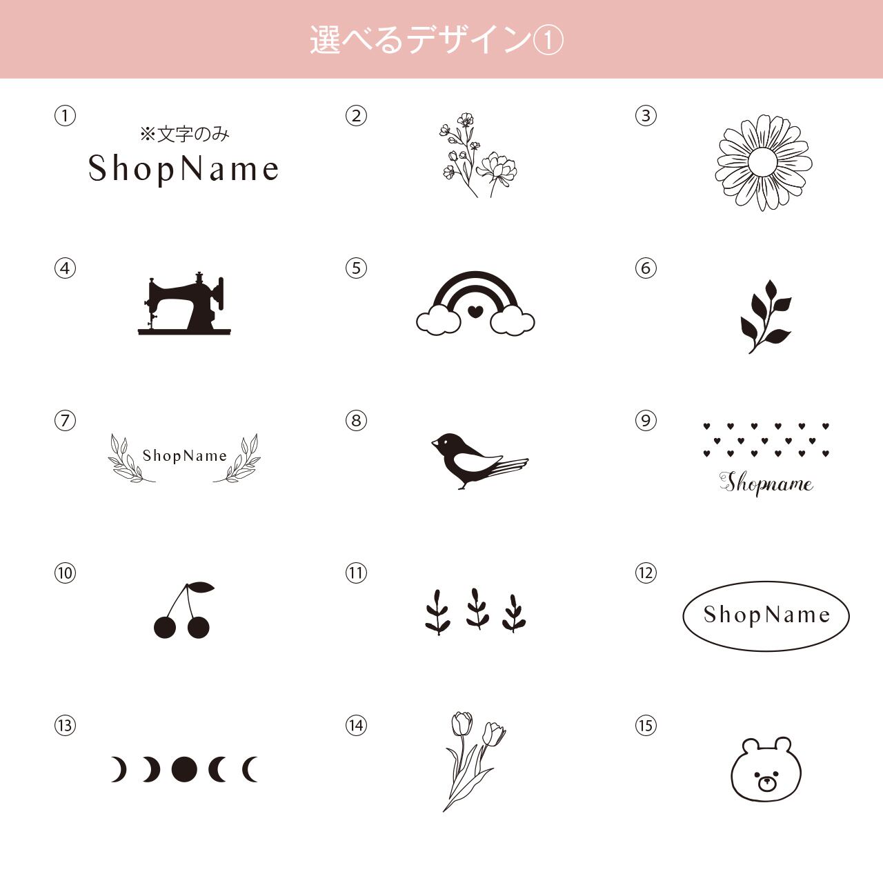 ショップ名など、一番大きな文字の部分のみフォントがお選びいただけます。