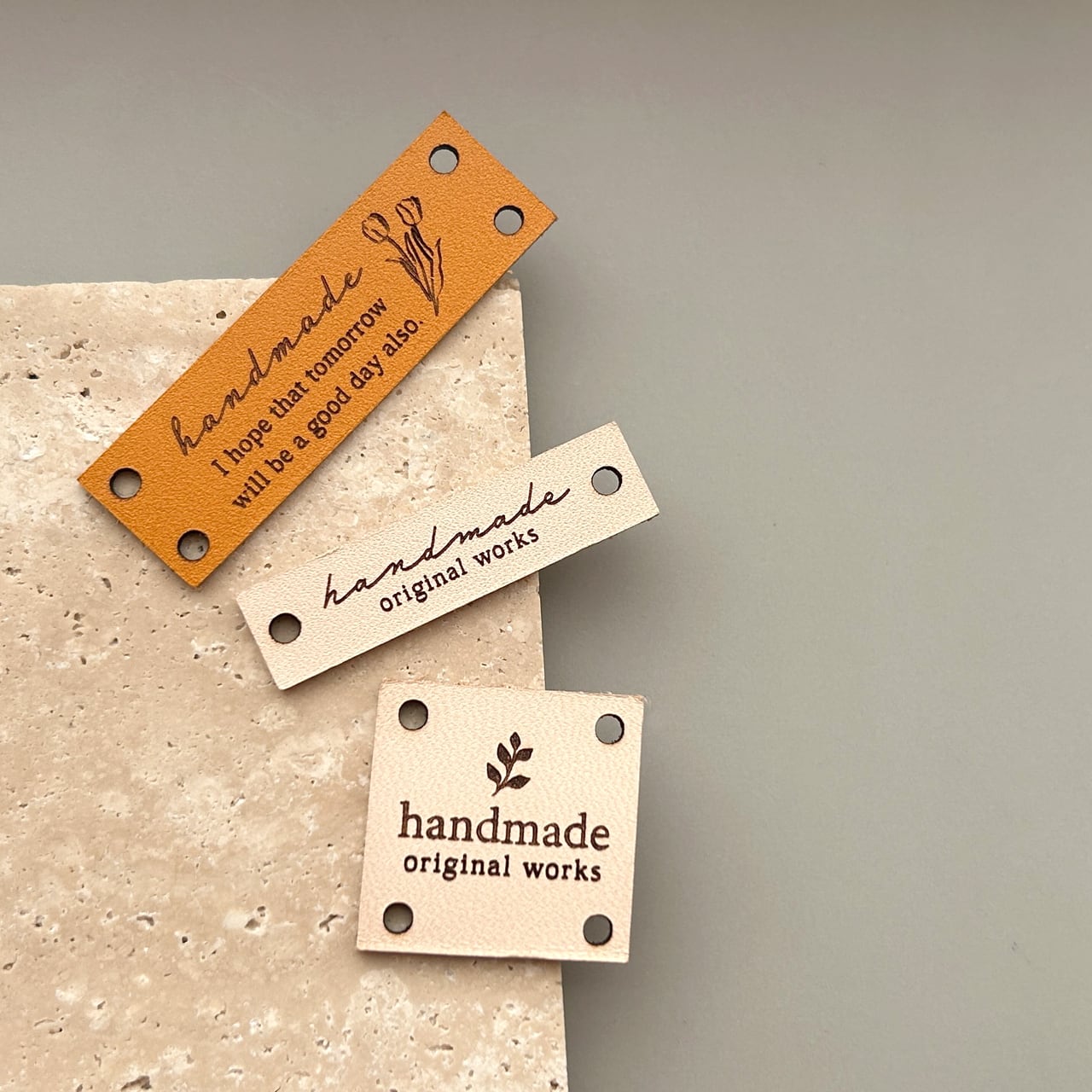 合成皮革で作られたフェイクレザーラベル(ネームタグ)です。